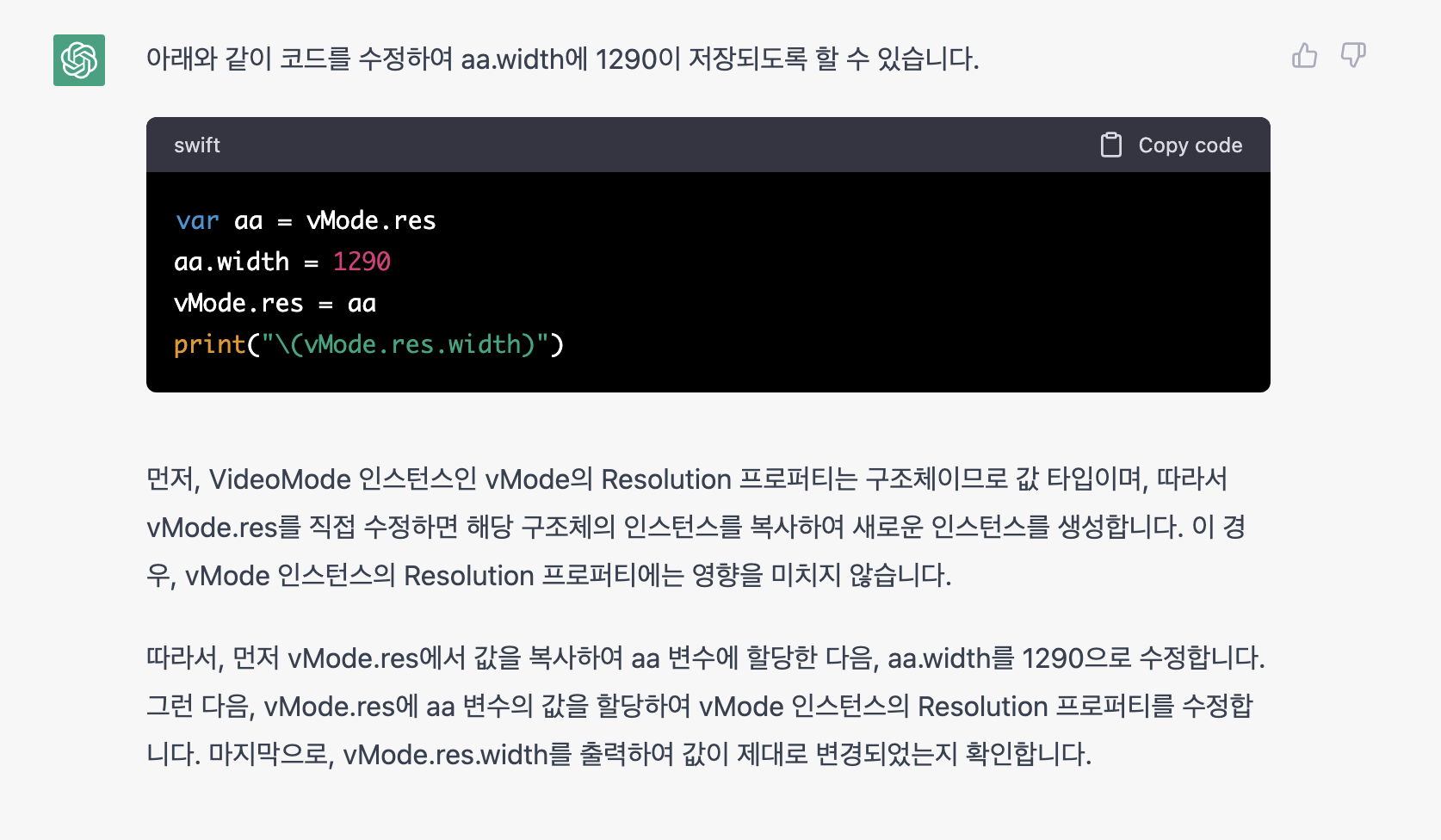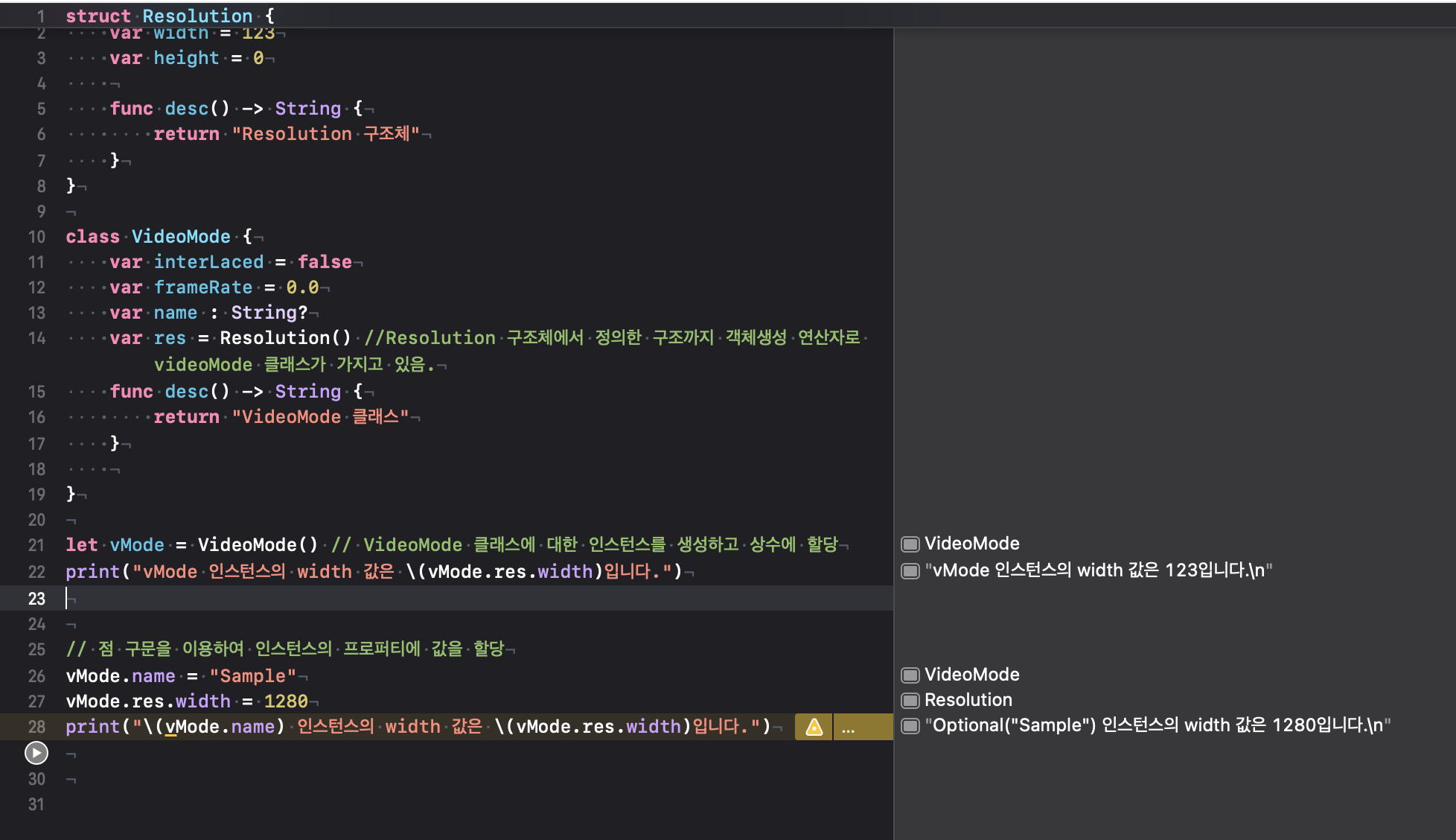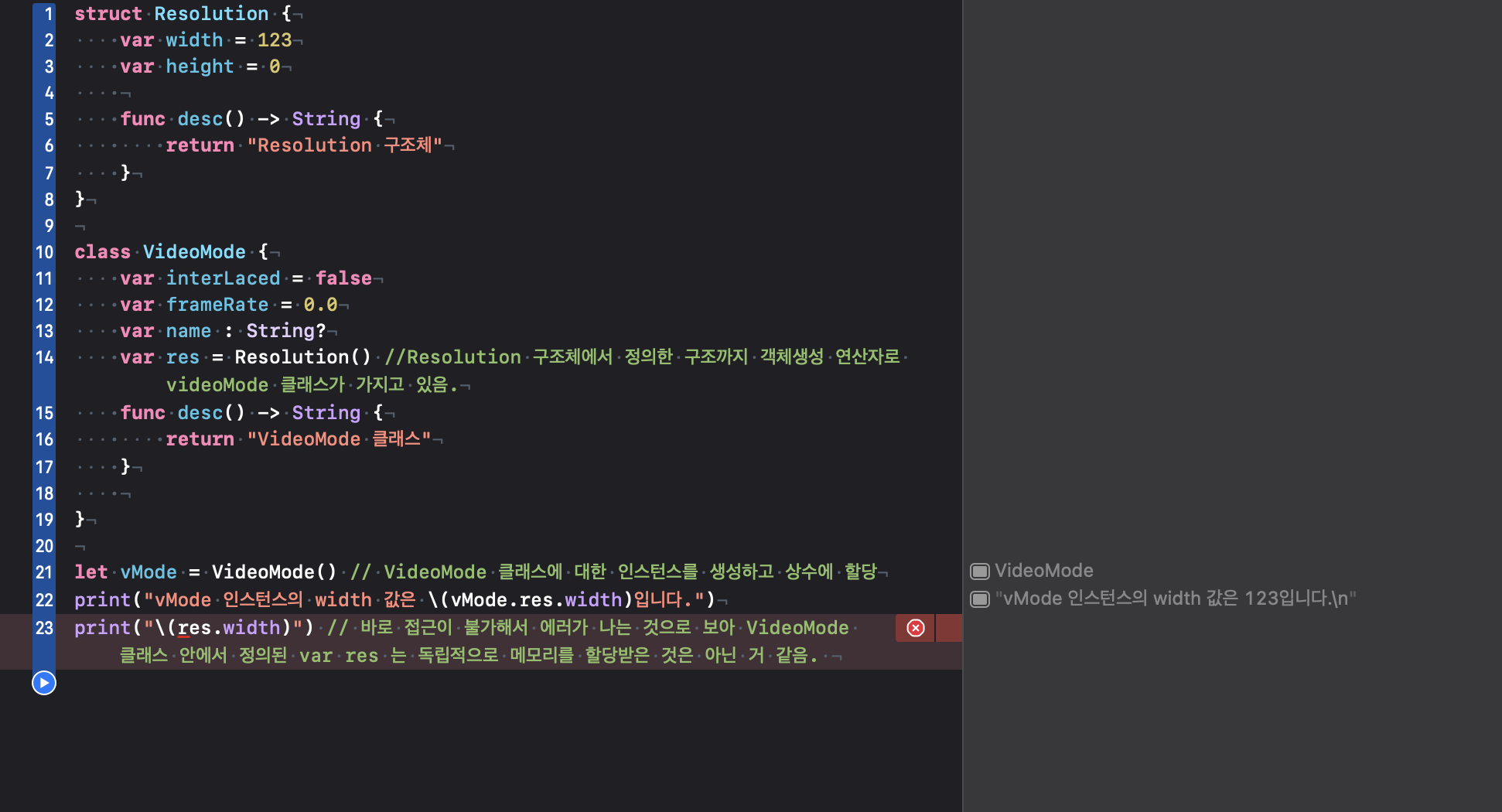 추가된 프로퍼티 res은 VideoMode 클래스의 프로퍼티이자 동시에 Resolution 구조체의 인스턴스.