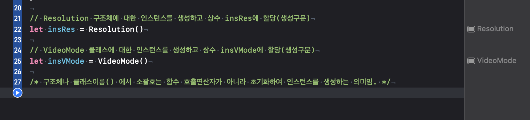 클래스 or 구조체( ) 에서 ( )는 인스턴스 생성 연산자