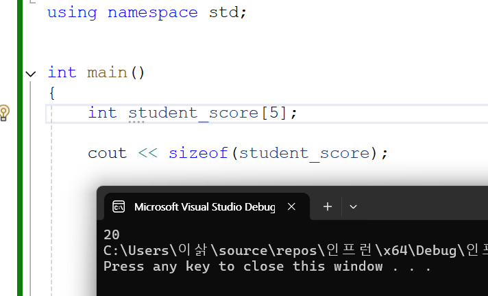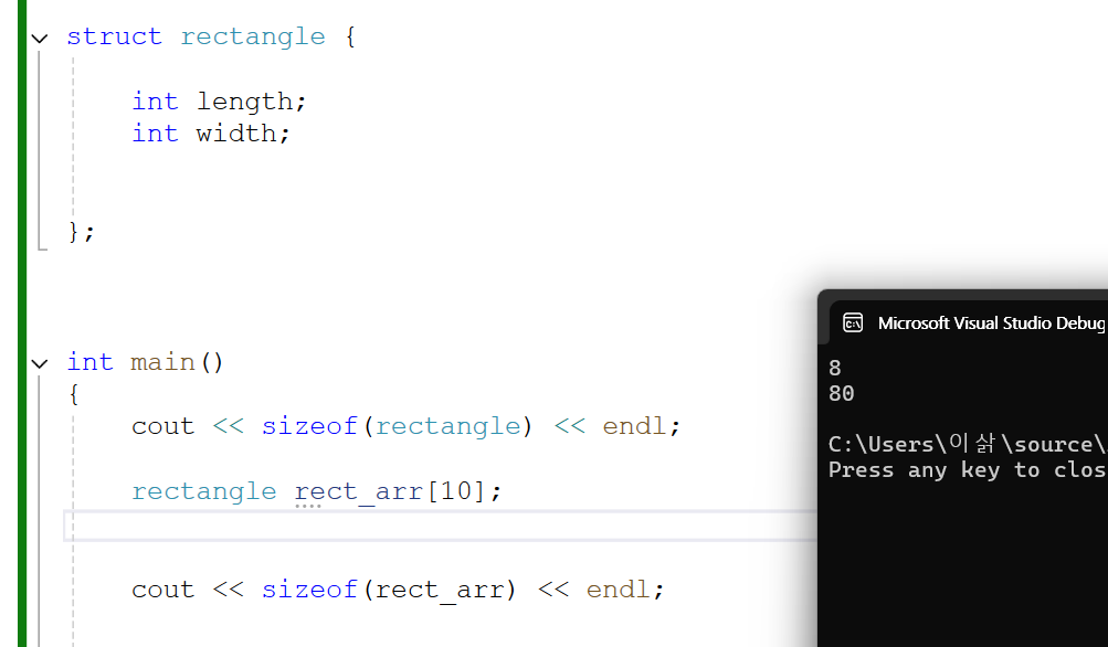 구조체에 함수를 보내보고, 구조체 안에 배열의 사이즈를 찍음