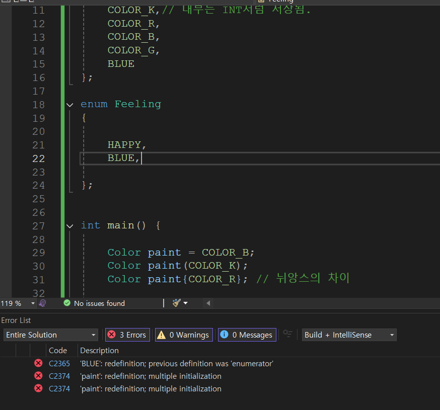실제 작업할 때는 WARNING이 많아서 초기화 안된 변수는 안보일 수 있음.