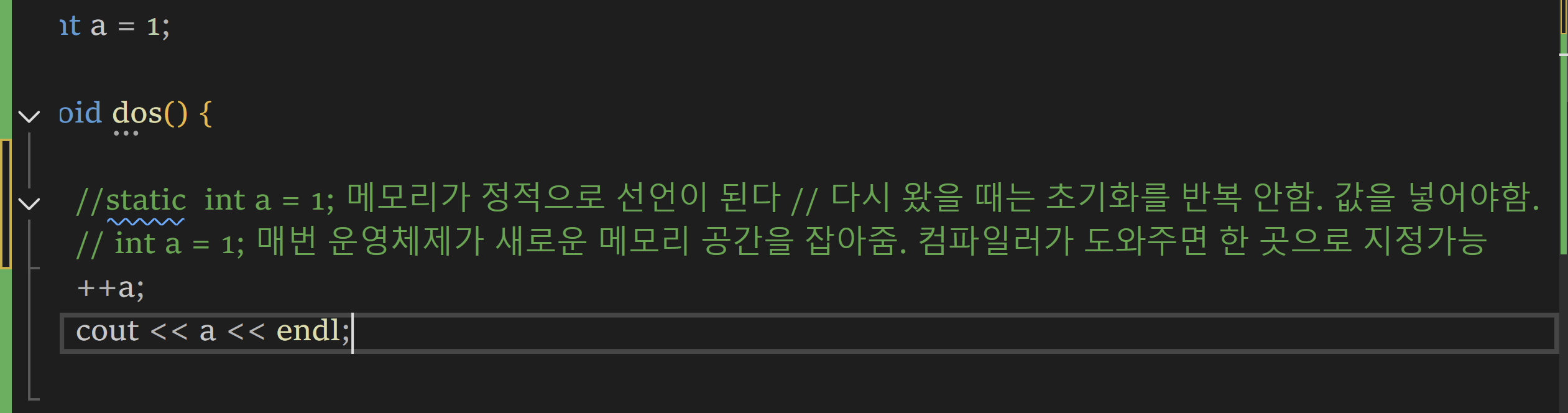 1.스테틱 메모리 얼로케이션, 전역, 스테틱.. 프로그램이 끝날때까지 가진것
