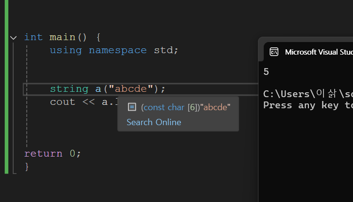 cout 에서 문자열은 특별하게 처리한다고 생각해야 함.
