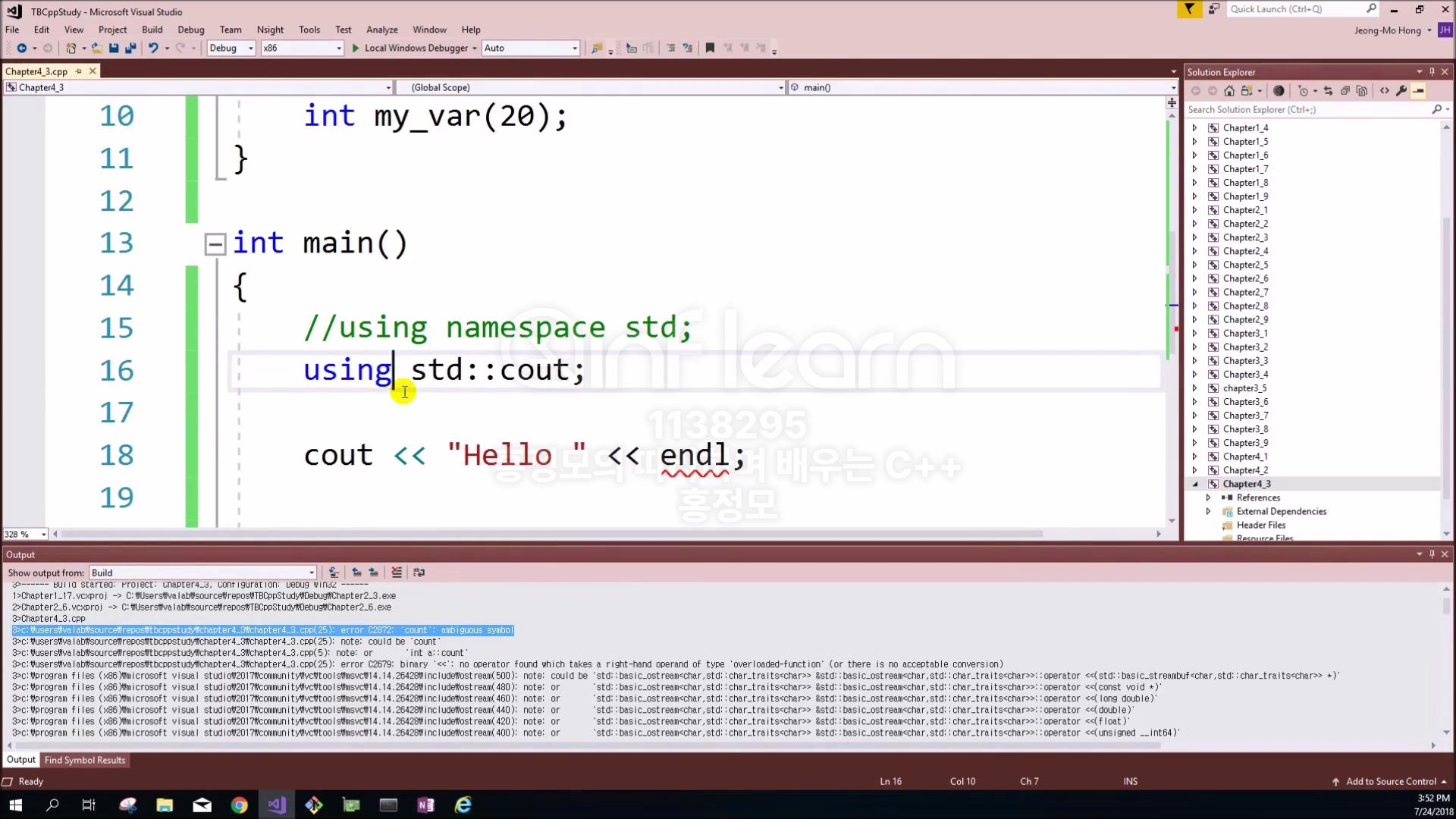 using namespace는 큰 영역에 넣으면 큰 오류를 초래할 수 있다. 좁은 영역에 넣고 쓰는게 좋음.